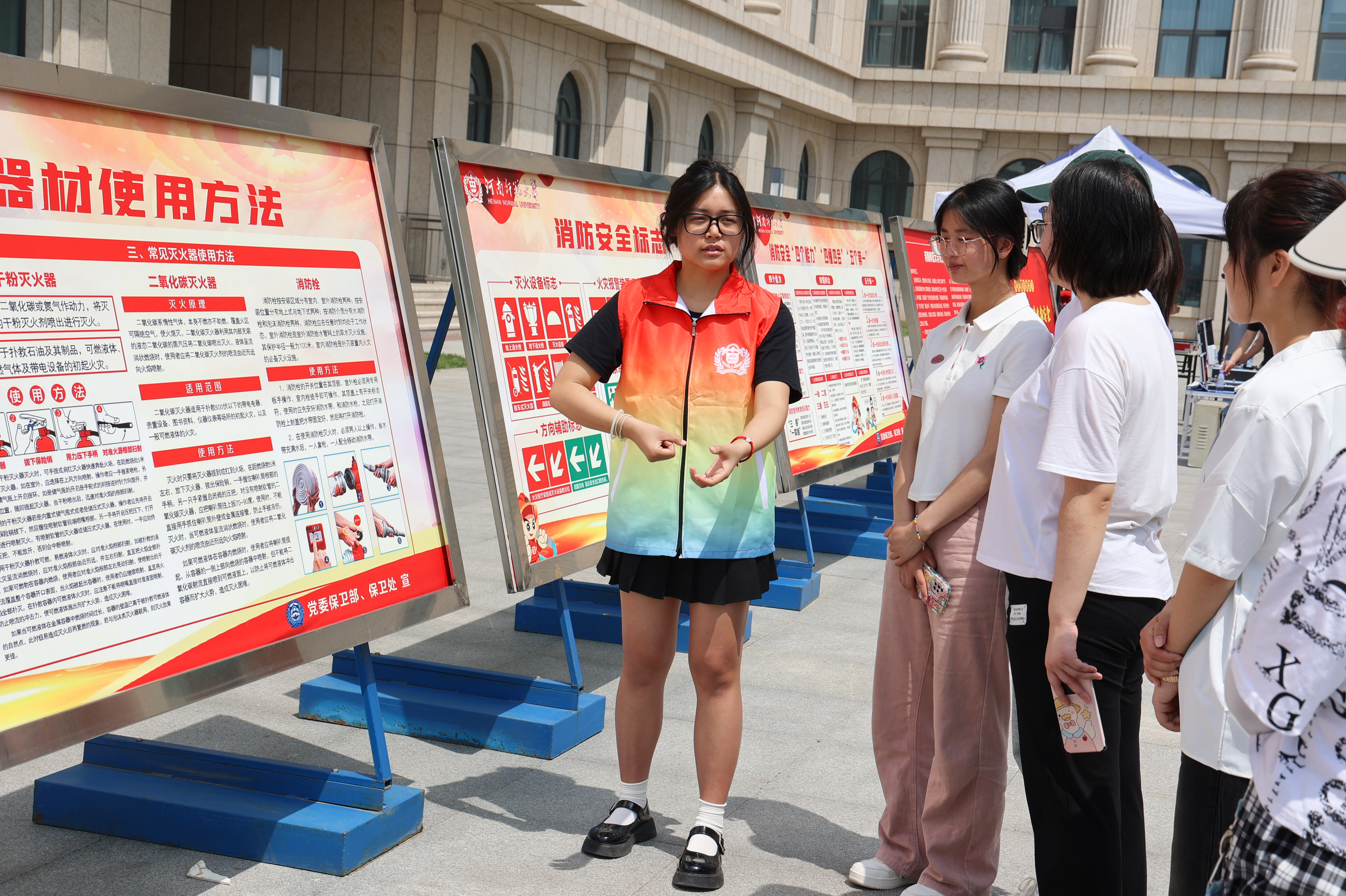 活动现场,全体人员为在“5.12”汶川大地震以及在历次重大自然灾害中去世的同胞默哀。后勤管理处处长、后勤服务集团总经理董国强宣读了《河南师范大学第15个全国防灾减灾日倡议书》,党委保卫部部长、保卫处处长宋卫平宣读了《河南师范大学火灾警示宣传教育月倡议书》。王亮结合近年来发生在高校的典型火灾案例,呼吁大家关注、参与、共享消防安全。参会师生员工分组有序参观宣传展板,观看宣传视频,观摩防灾减灾和应急救援装备,参加模拟火灾逃生演练。