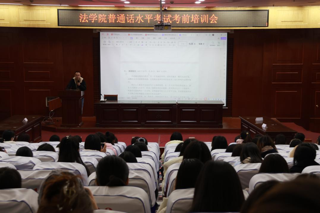 为帮助学生提升普通话水平和口语表达能力,掌握普通话练习技巧,提高普通话测试通过率,11月19日下午,法学院于模拟法庭召开普通话考前培训会。会议由法学院专职辅导员、演讲与口才协会负责人赵东方主讲。