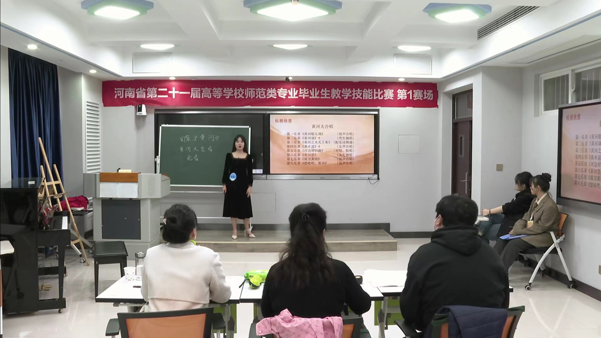 本届大赛共有来自全省61所高校的184名选手参加比赛,分10个赛场同时进行,比赛内容包含微型课、答辩、才艺展示(中小学)或专业技能展示(学前教育)3 个环节。参赛选手以先进的教学理念、娴熟的教学技能、流畅的语言表达,展示了扎实的学科素养、教学能力和良好的精神面貌。本届大赛首次设置颁奖典礼和教学成果展示活动环节,现场为一等奖代表、优秀指导教师代表、团体一等奖颁发奖励证书。由我校和商丘师范学院、周口师范学院共同带来的展演节目舞蹈《以书为羽》、话剧《长大后我就成了你》、歌曲《老师我总是想起你》、音乐剧《梦想的坚守》、歌伴舞《再一次出发》等,紧扣师范生技能比赛和师范教育主旋律,精彩纷呈,反响强烈。