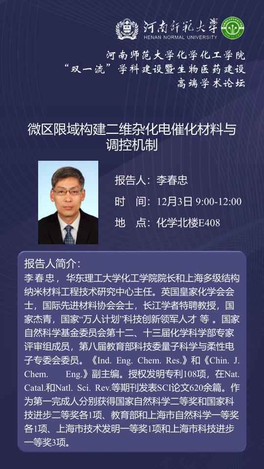 华东理工大学李春忠教授将应邀做客百年校庆之“俊甫”讲坛