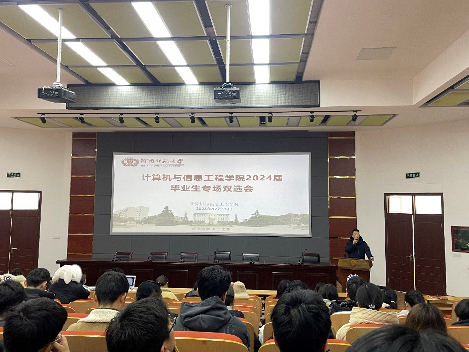 院党委书记瞿洪明为同学们简要介绍了参会单位的基本情况,要求同学们要认真聆听宣讲,鼓励大家高度重视、积极参与,展现我院学生的素质,维护学院的形象,同时要认真筹备,严肃对待报名和随后的面试,努力争取入职机会。随后,七家单位负责人播放了相关宣传视频,并从单位概况、单位福利、招聘计划、报名条件、薪资待遇等方面进行详细讲解,最后为同学们答疑解惑,让同学们加入工作群进一步了解后续报名步骤等。