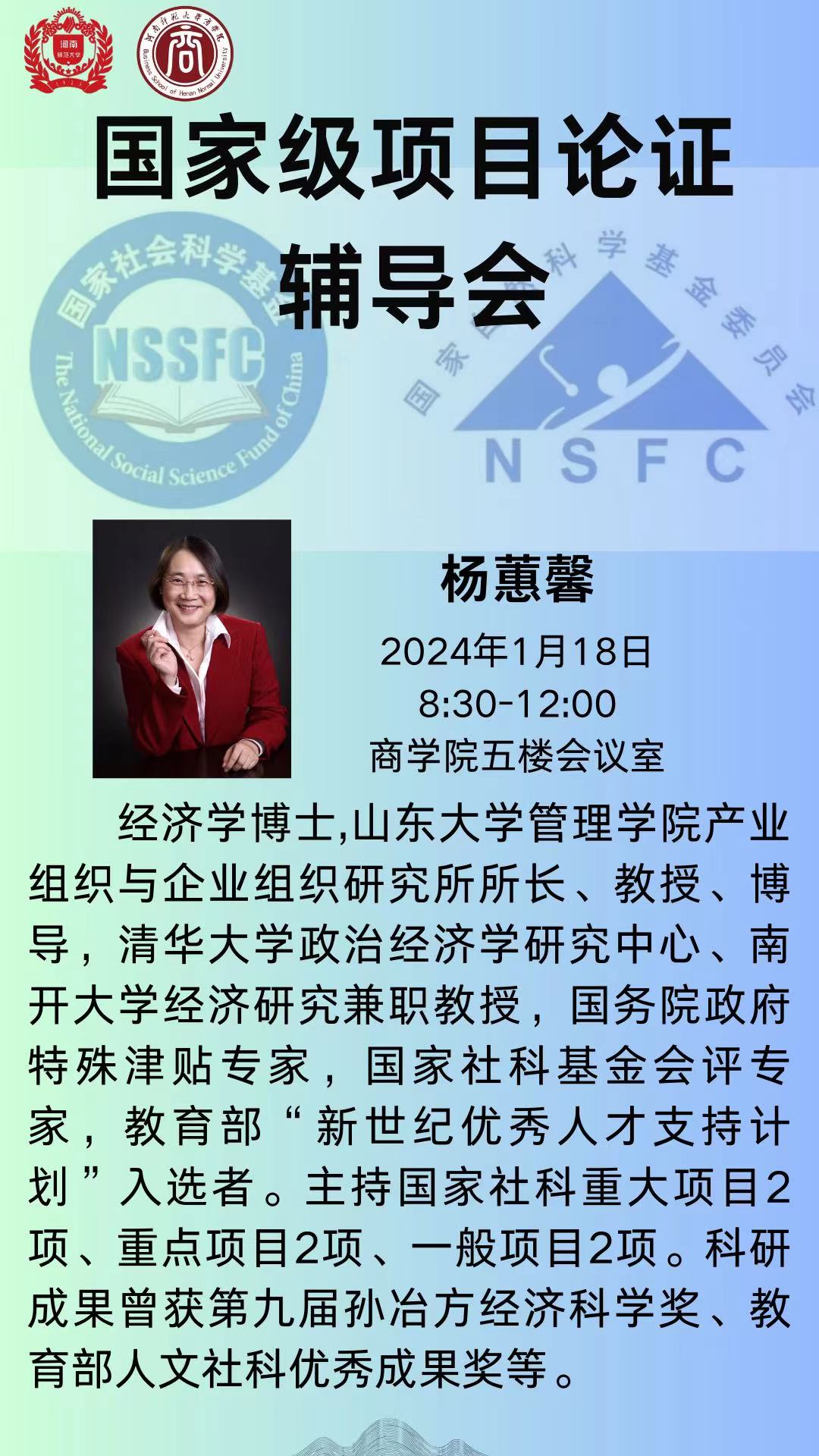 山东大学杨蕙馨教授将应邀做客中国经济大讲堂