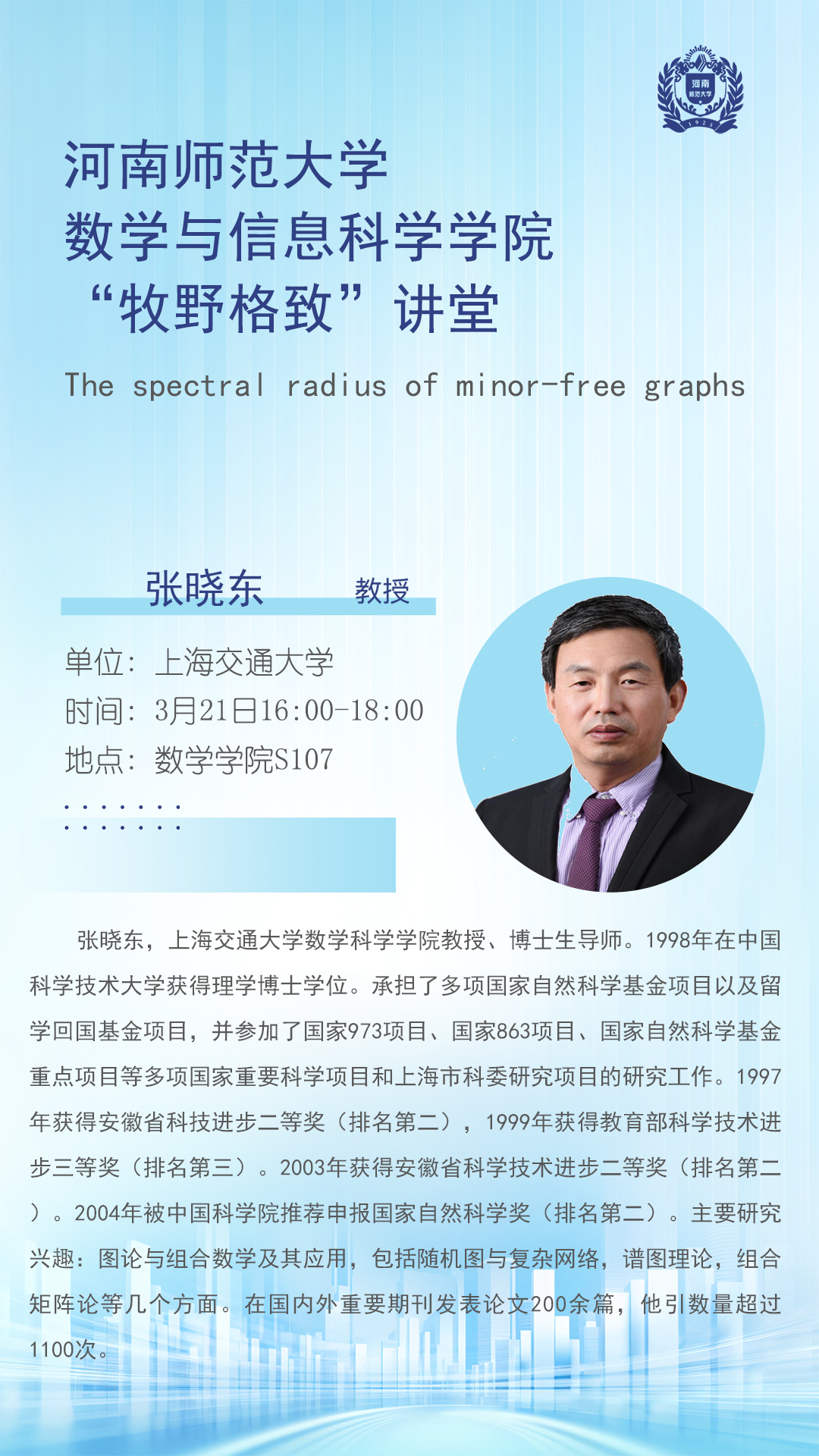 上海交通大学张晓东教授将应邀做客“牧野格致”讲堂