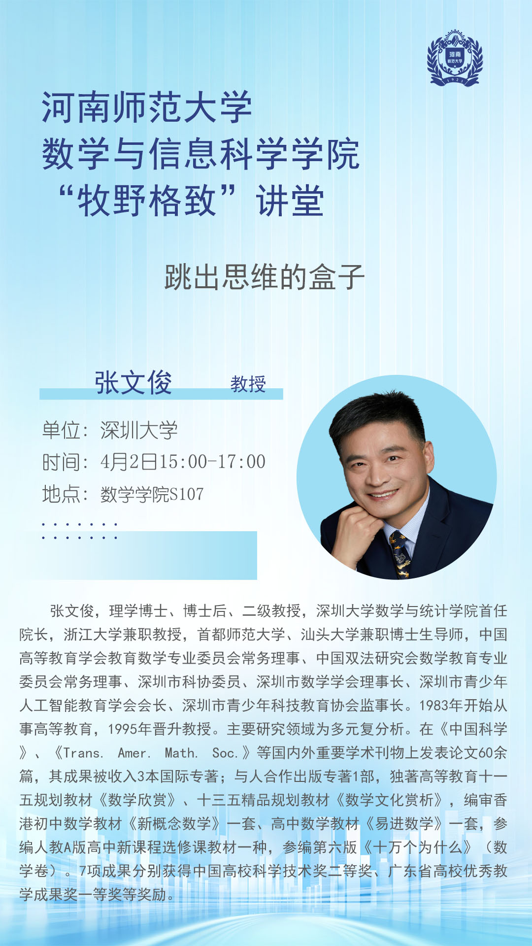 深圳大学张文俊教授将应邀做客“牧野格致”讲堂