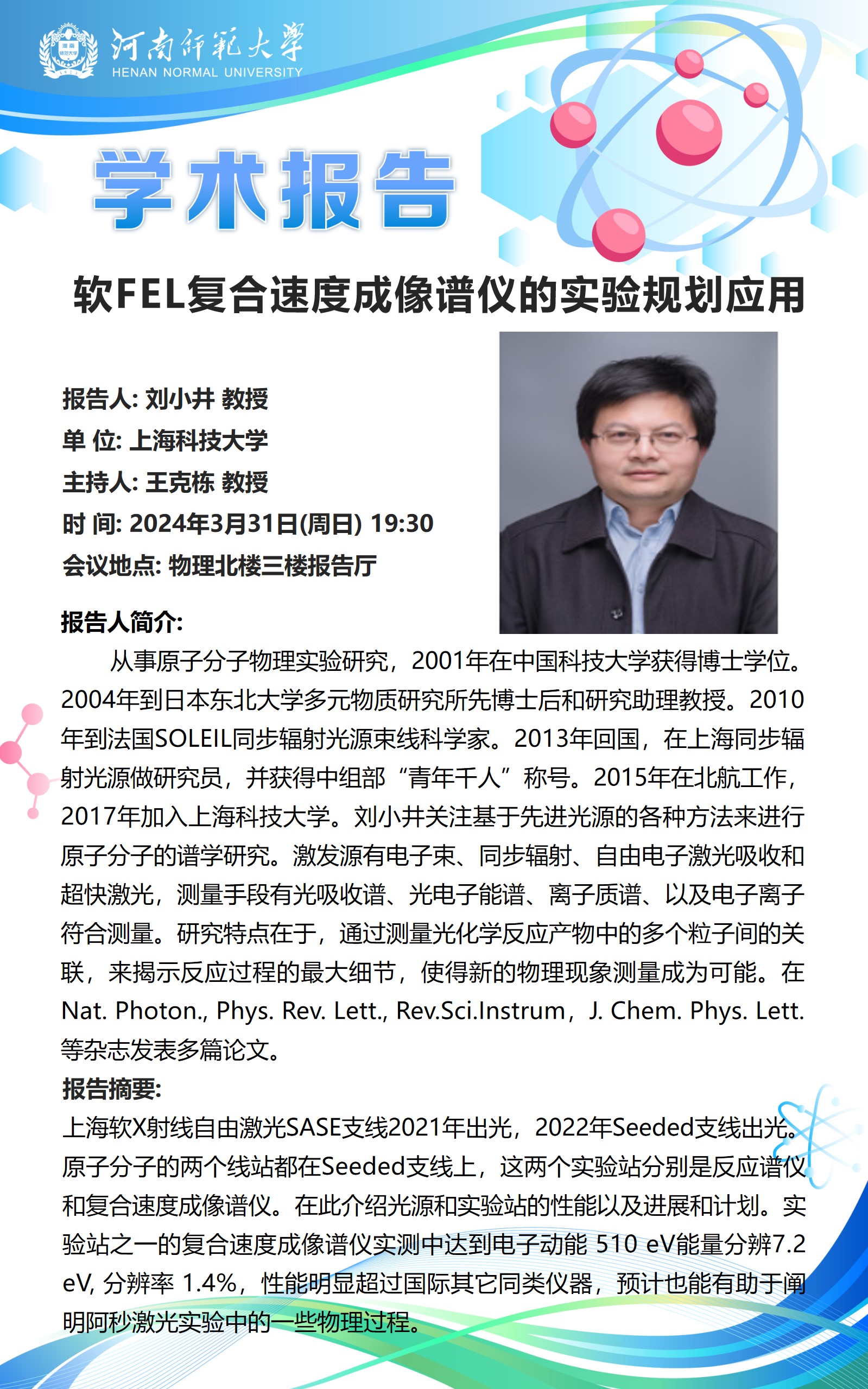 上海科技大学刘小井教授将应邀做客“八角楼”讲坛