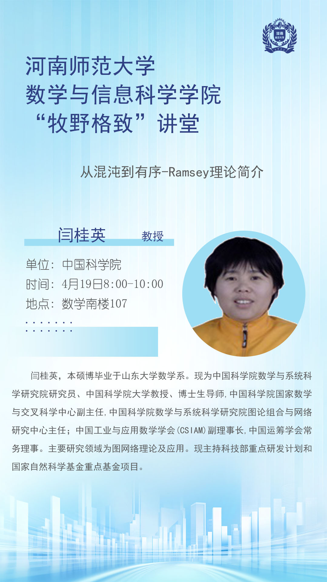 中国科学院数学与系统科学研究院闫桂英研究员将应邀做客“牧野格致”讲堂