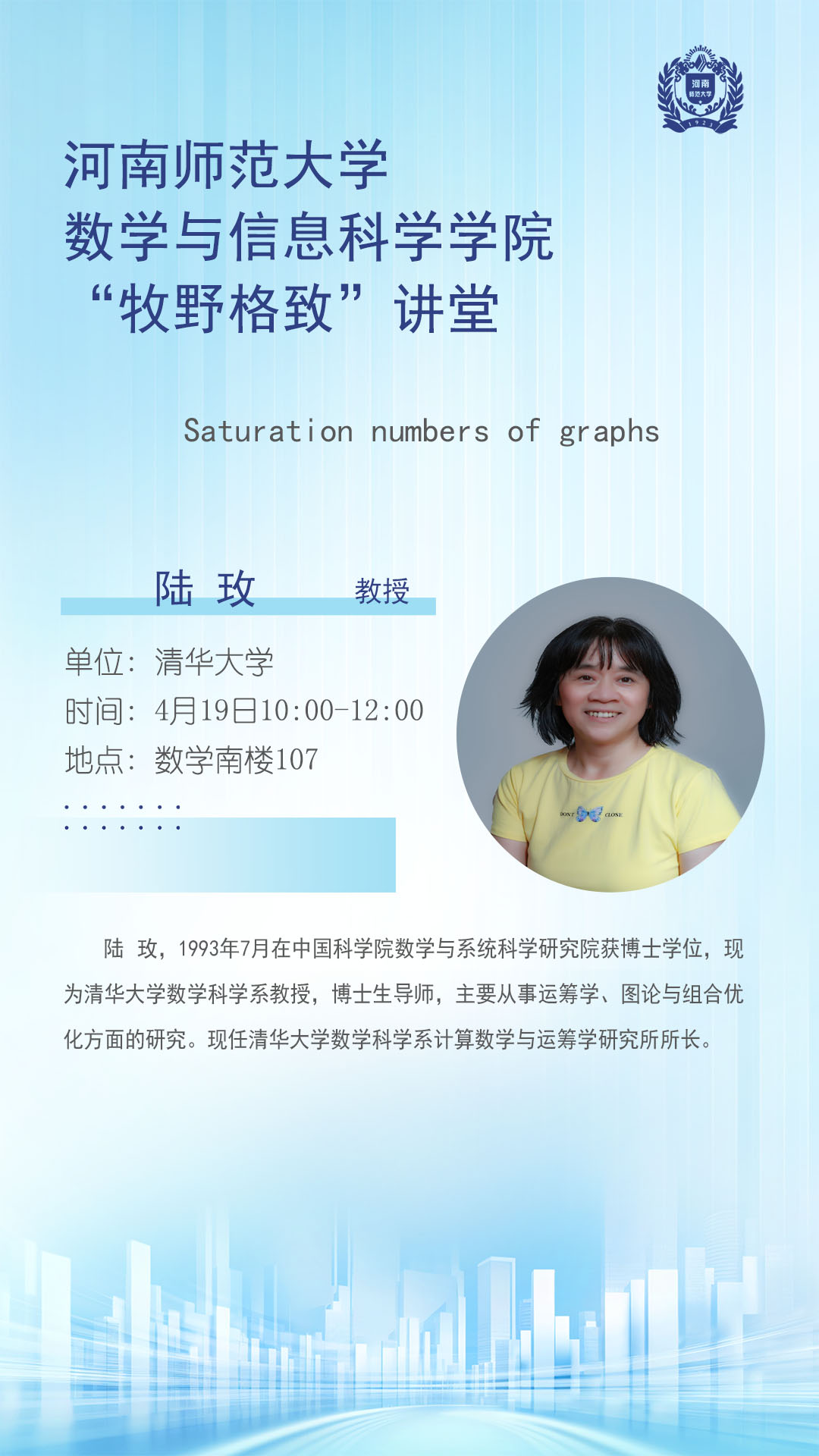清华大学陆玫教授将应邀做客“牧野格致”讲堂