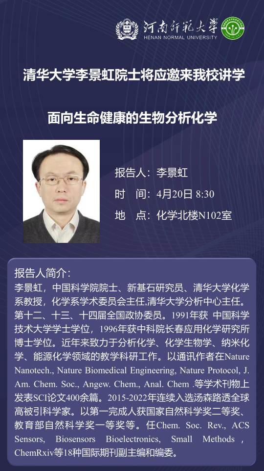 清华大学李景虹院士将应邀做客“俊甫讲堂”