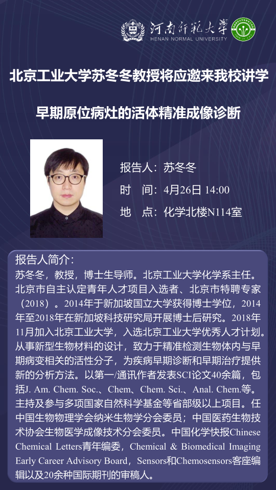 北京工业大学苏冬冬教授将应邀做客“俊甫讲堂”