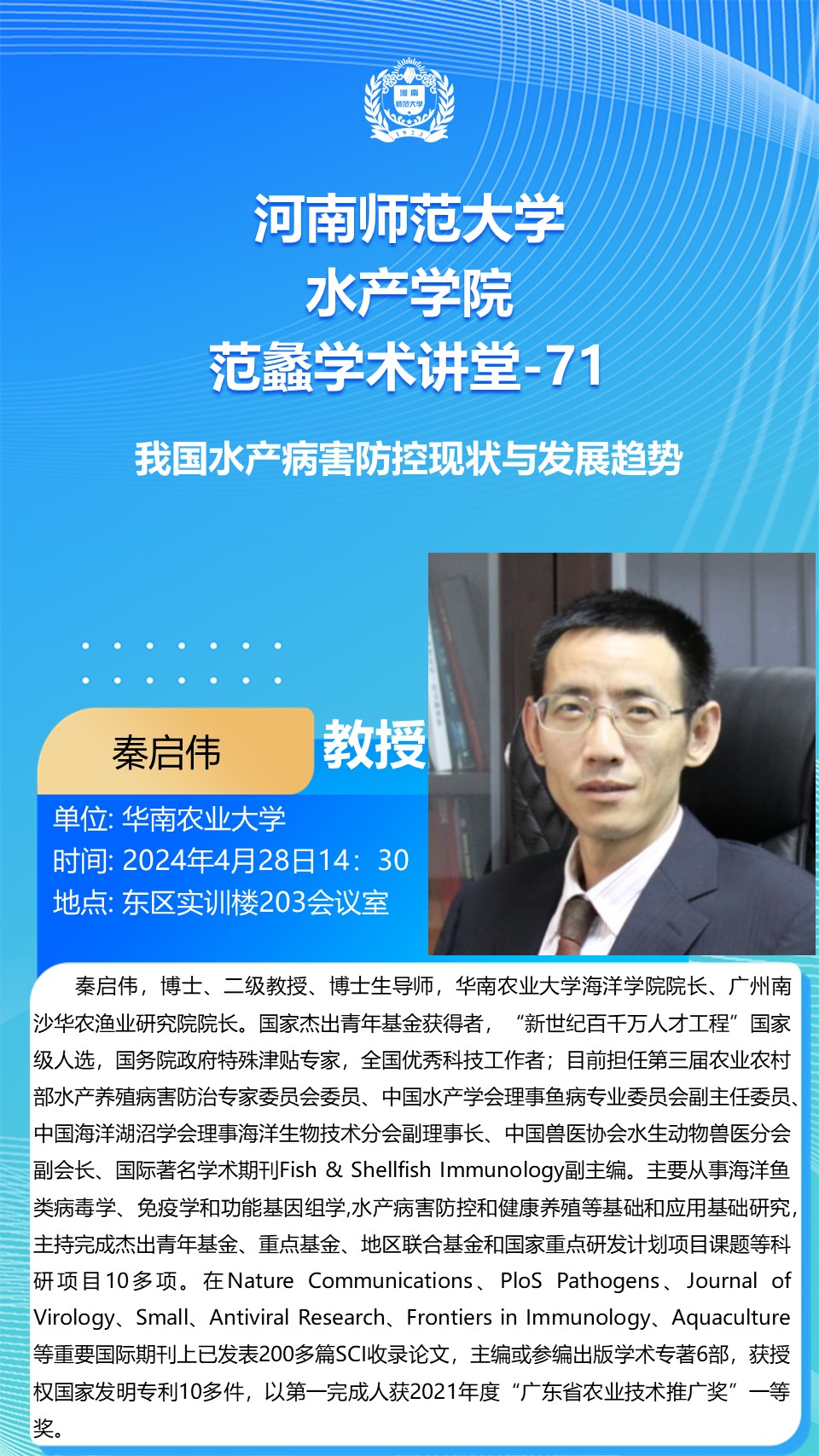 华南农业大学秦启伟教授将应邀做客“范蠡学术讲堂”