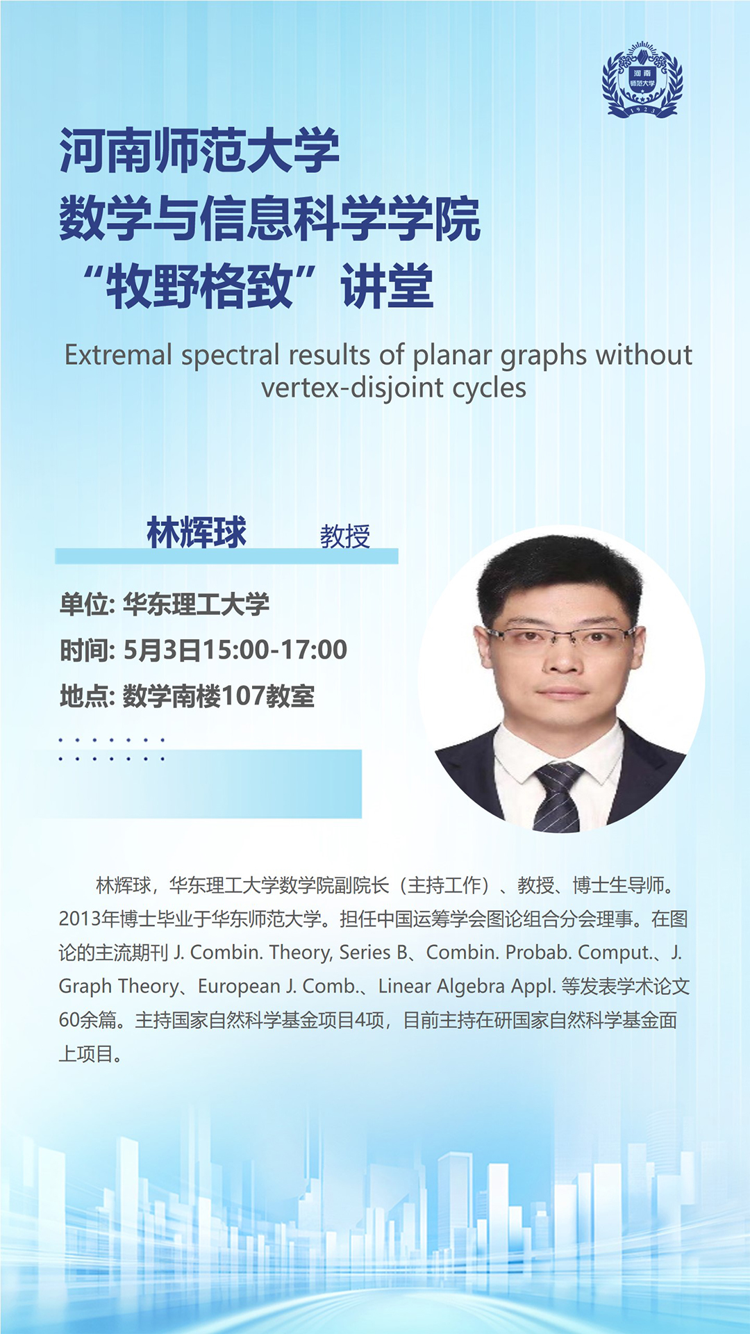 华东理工大学林辉球教授将应邀做客“牧野格致”讲堂