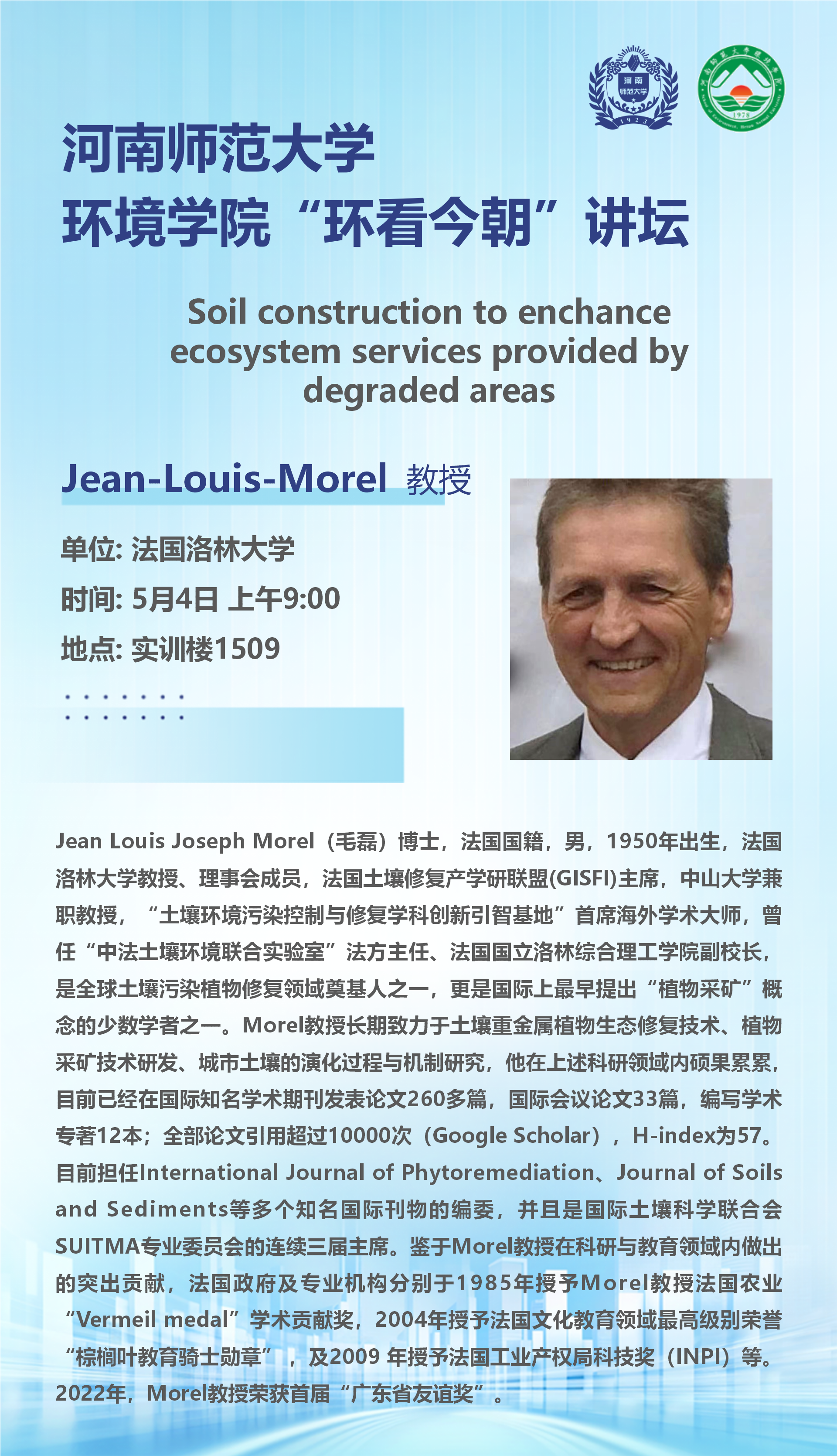 法国格林大学Jean-Louis-Morel教授将应邀做客“环看今朝”讲坛