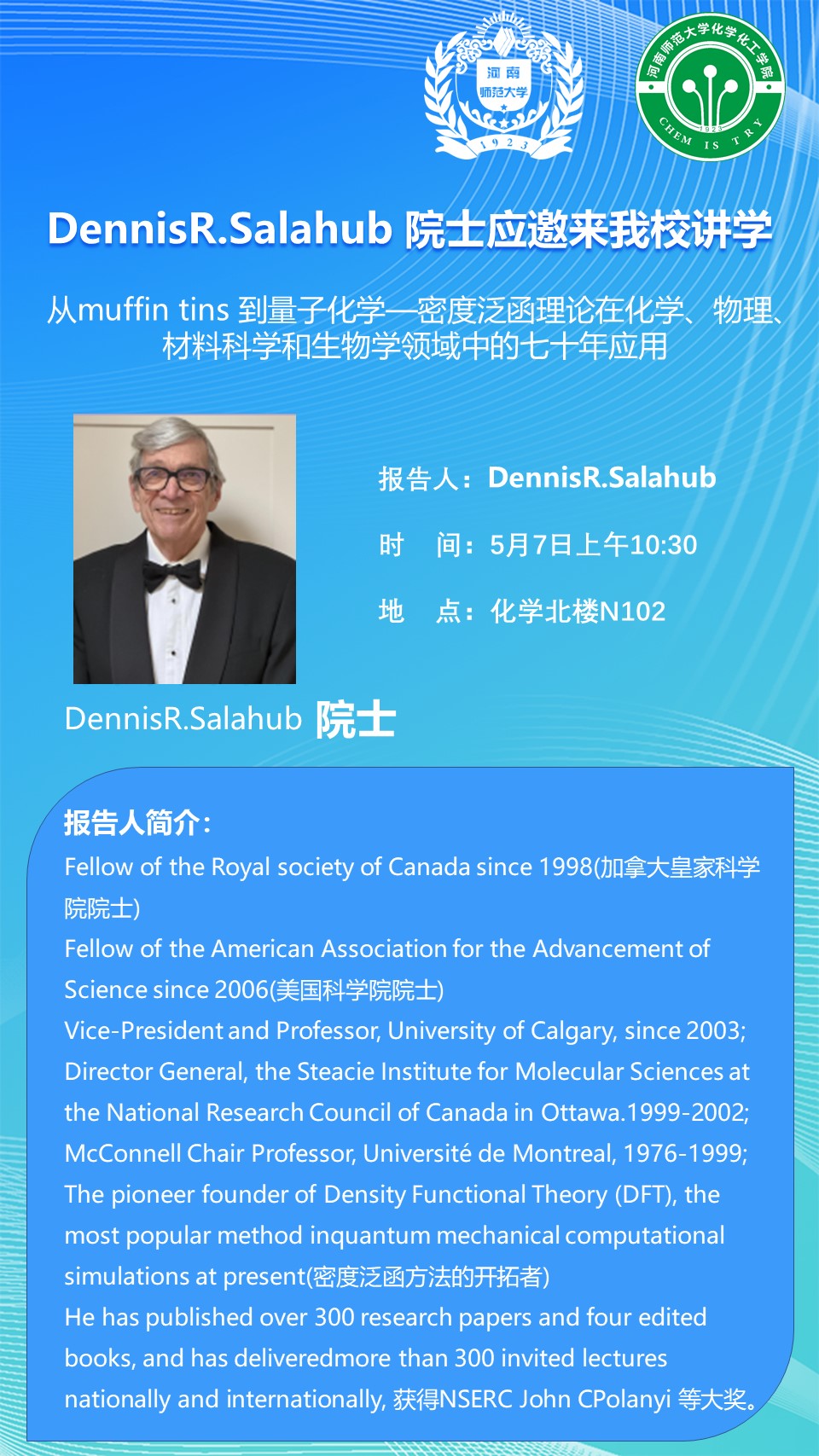 加拿大卡尔加里大学DennisR.Salahub院士将应邀做客“俊甫讲堂”