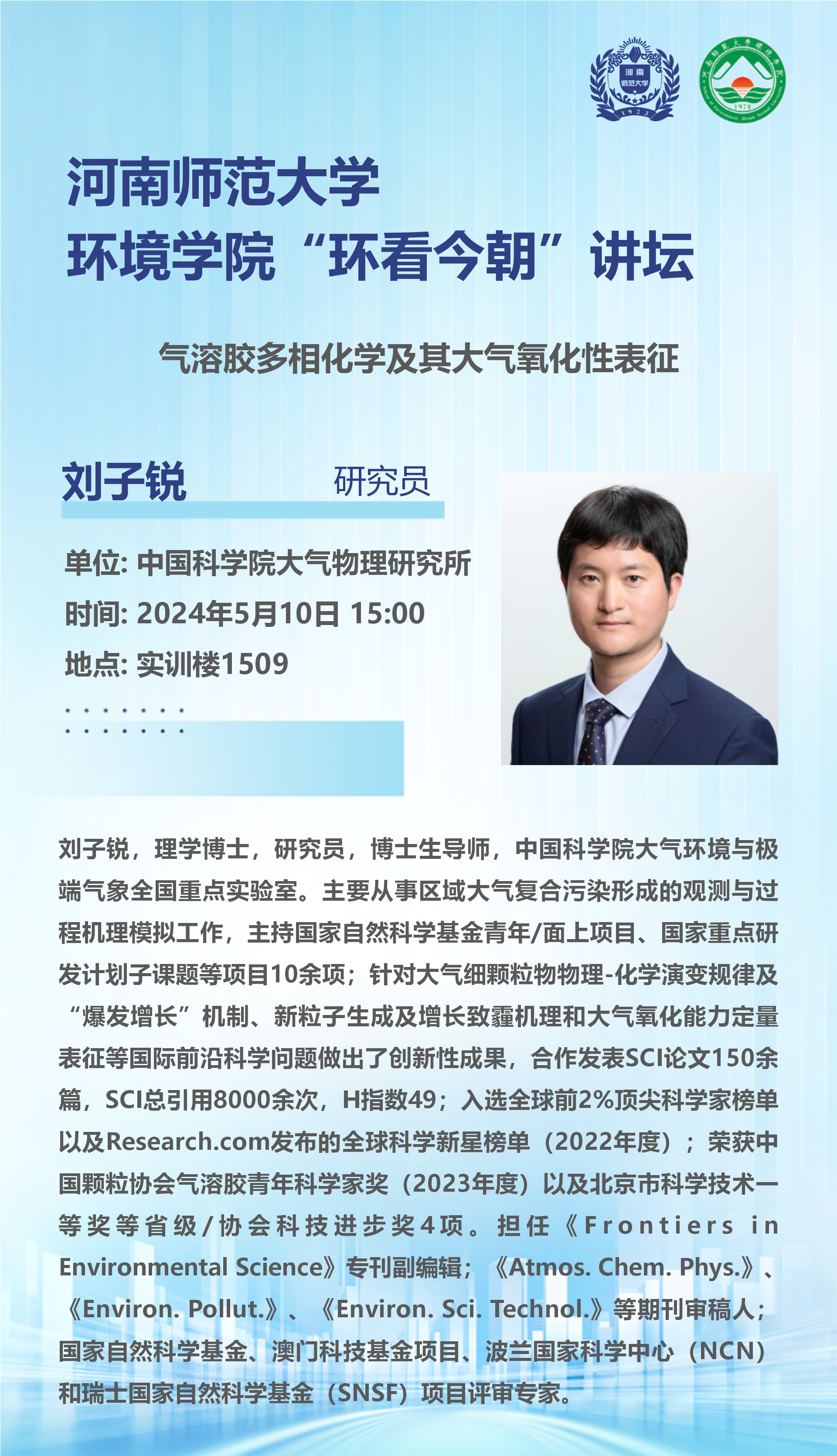 中国科学院大气物理研究所刘子锐研究员将应邀做客“环看今朝”讲坛