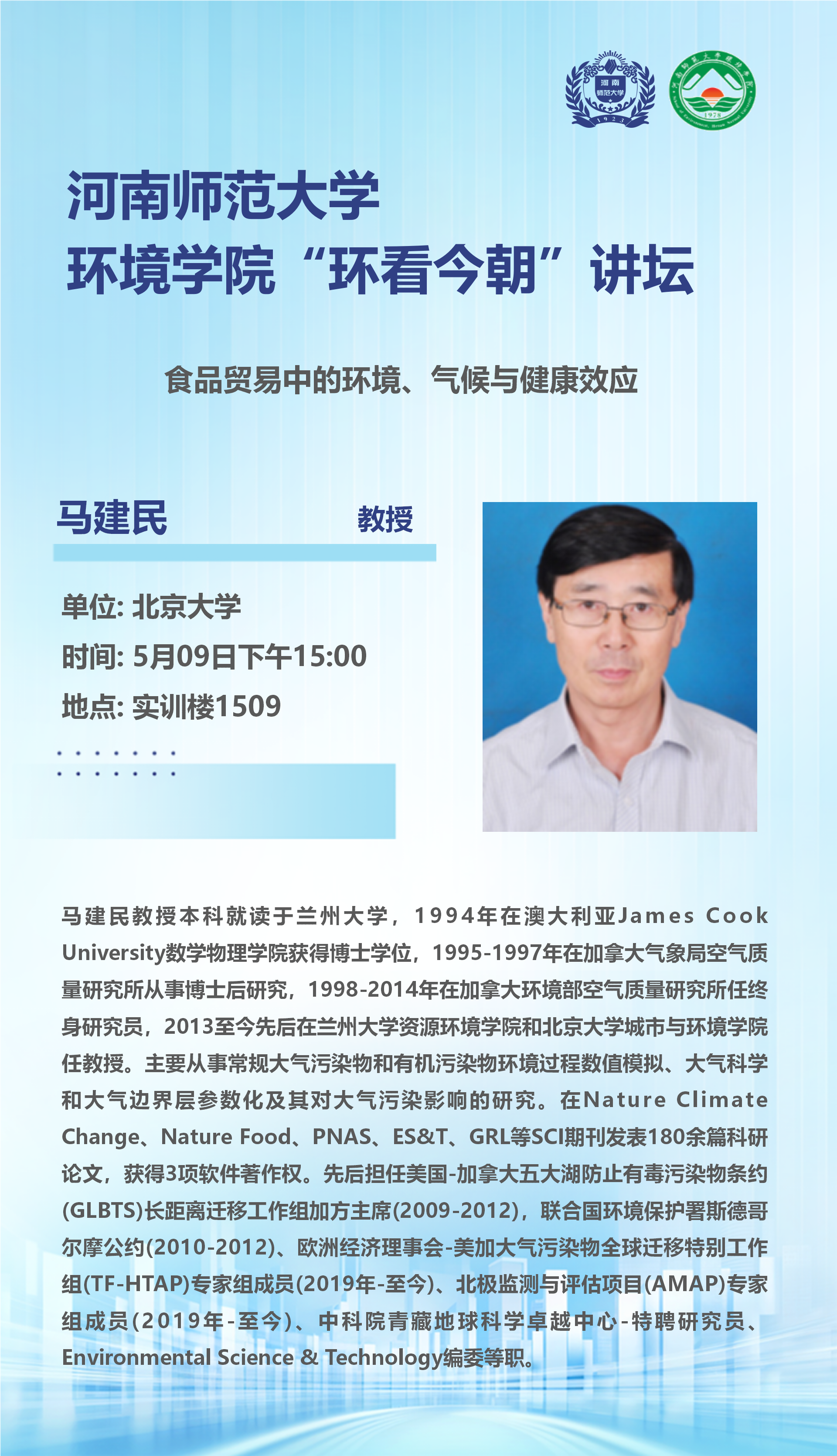 北京大学马建民教授将应邀做客“环看今朝”讲坛