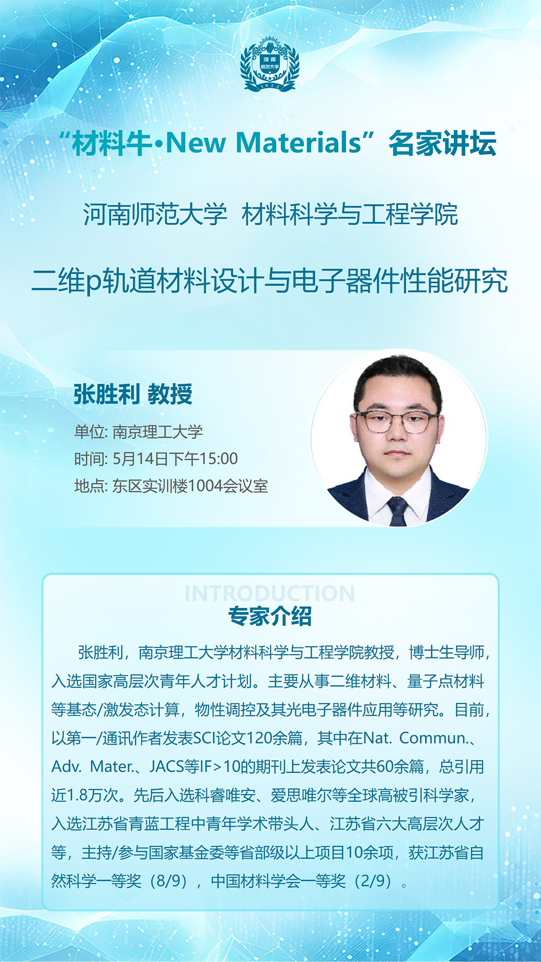 南京理工大学张胜利教授将应邀做客“材料牛·New Materials”名家讲坛