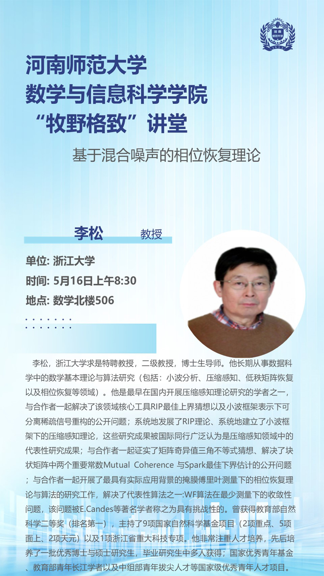 浙江大学李松教授将应邀做客“牧野格致”讲堂