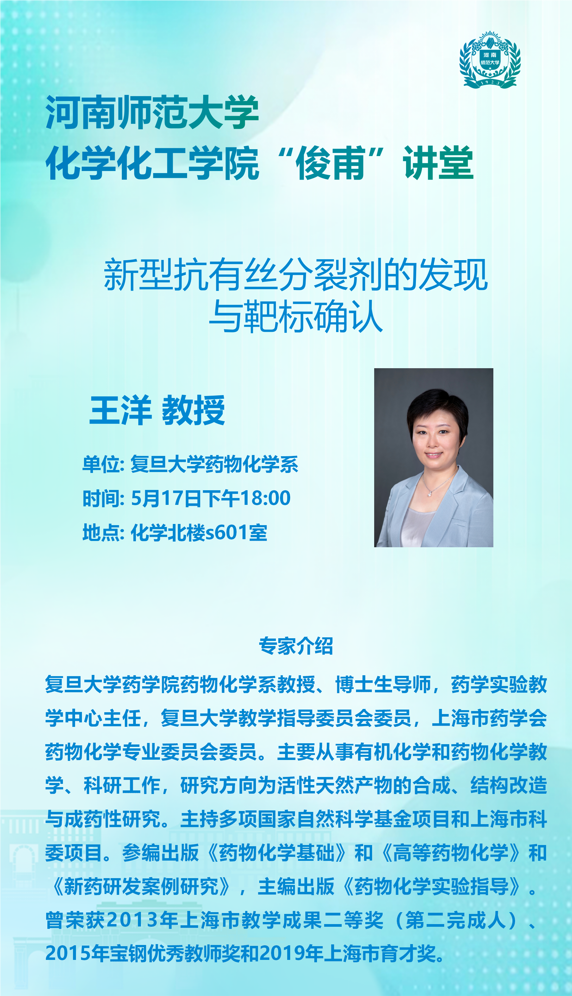 复旦大学王洋教授将应邀做客“俊甫讲堂”