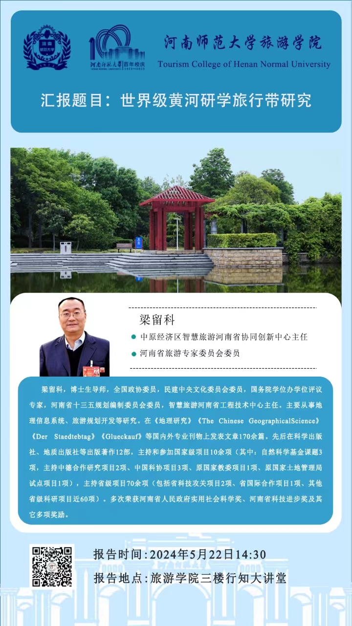 中原经济区智慧旅游河南省协同创新中心梁留科主任将应邀做客高端专家行知讲坛