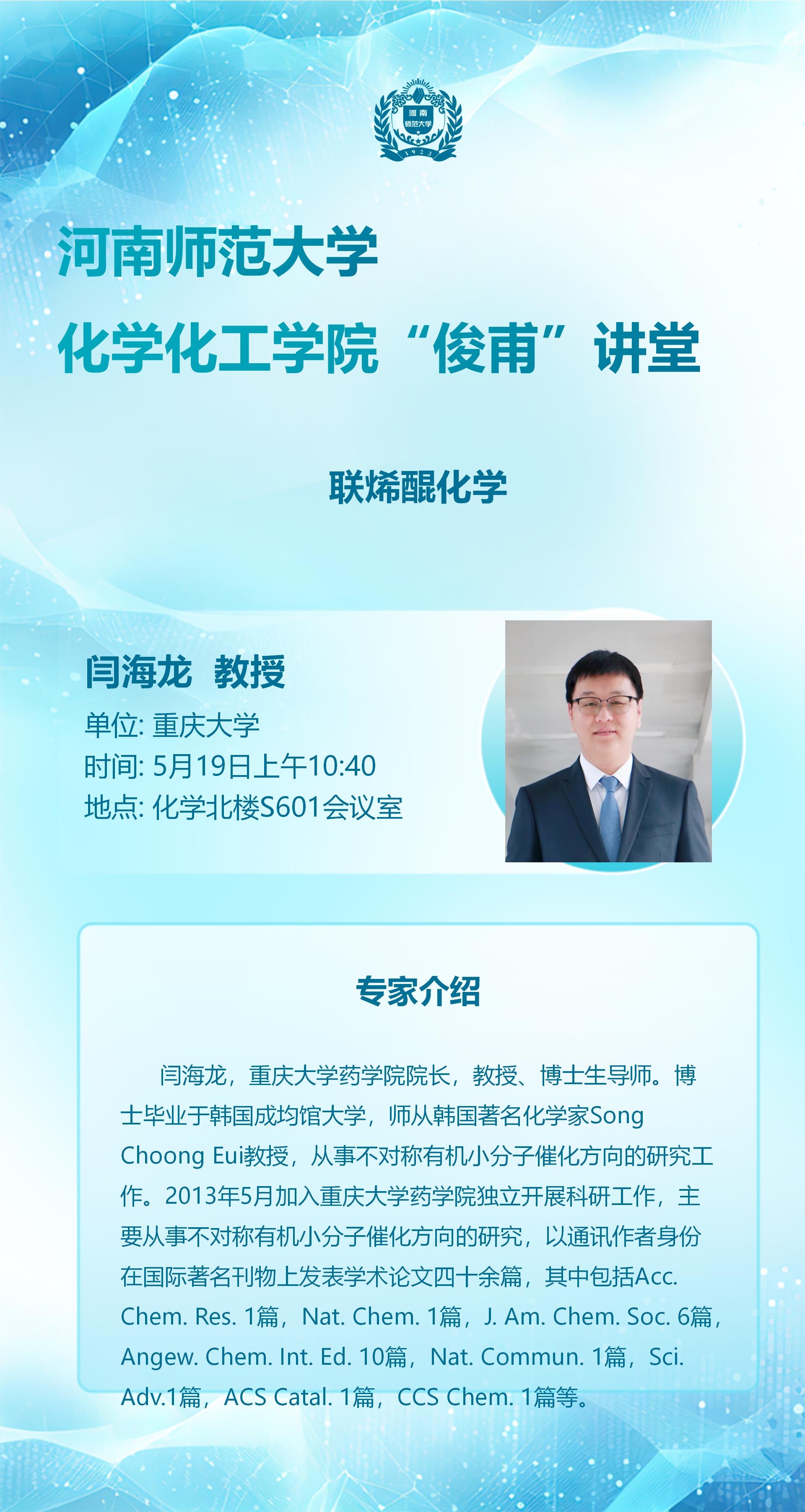 重庆大学闫海龙教授将应邀做客“俊甫讲堂”