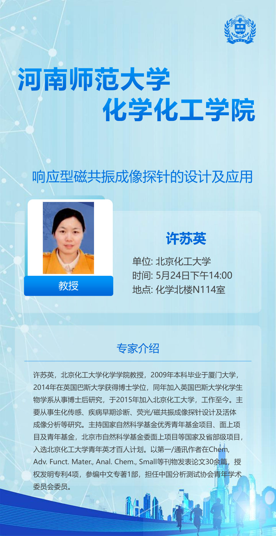 北京化工大学许苏英教授将应邀做客“俊甫讲堂”