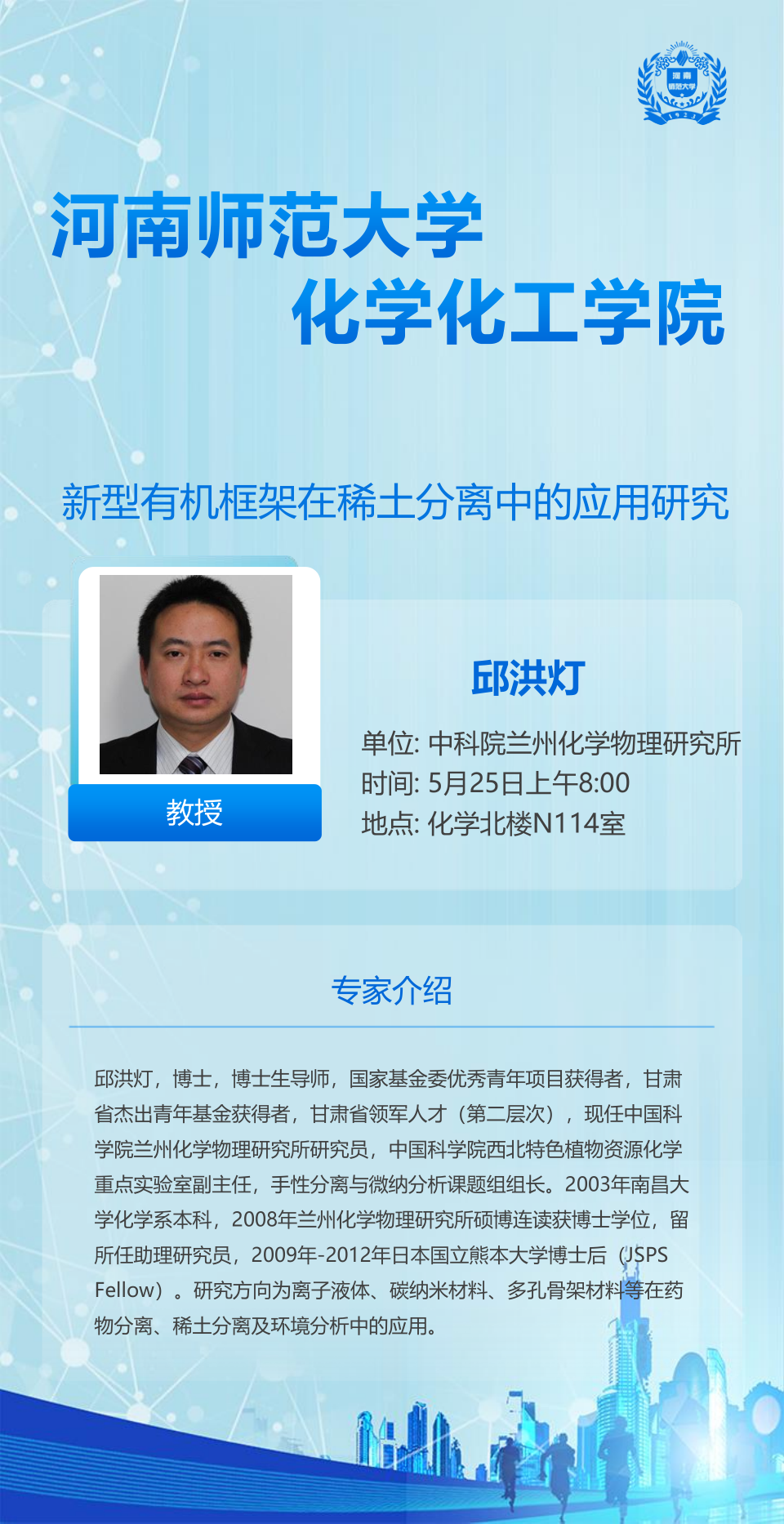 中国科学院兰州化学物理研究所邱洪灯教授将应邀做客“俊甫讲堂”