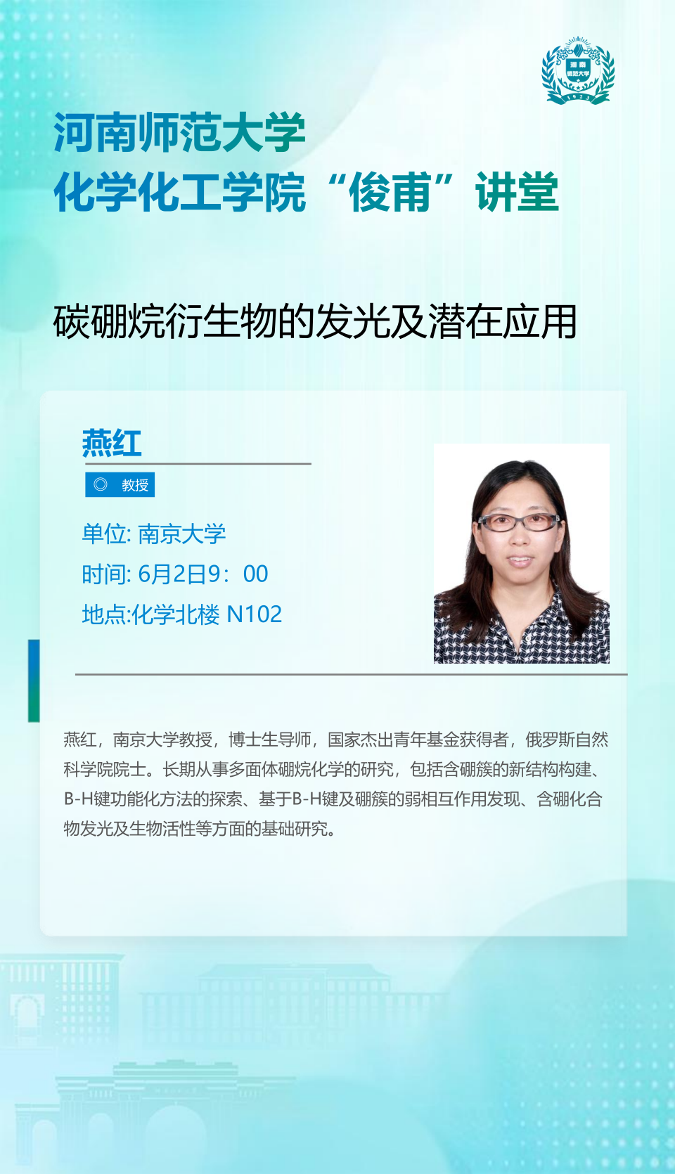 南京大学燕红教授将应邀做客“俊甫讲堂”