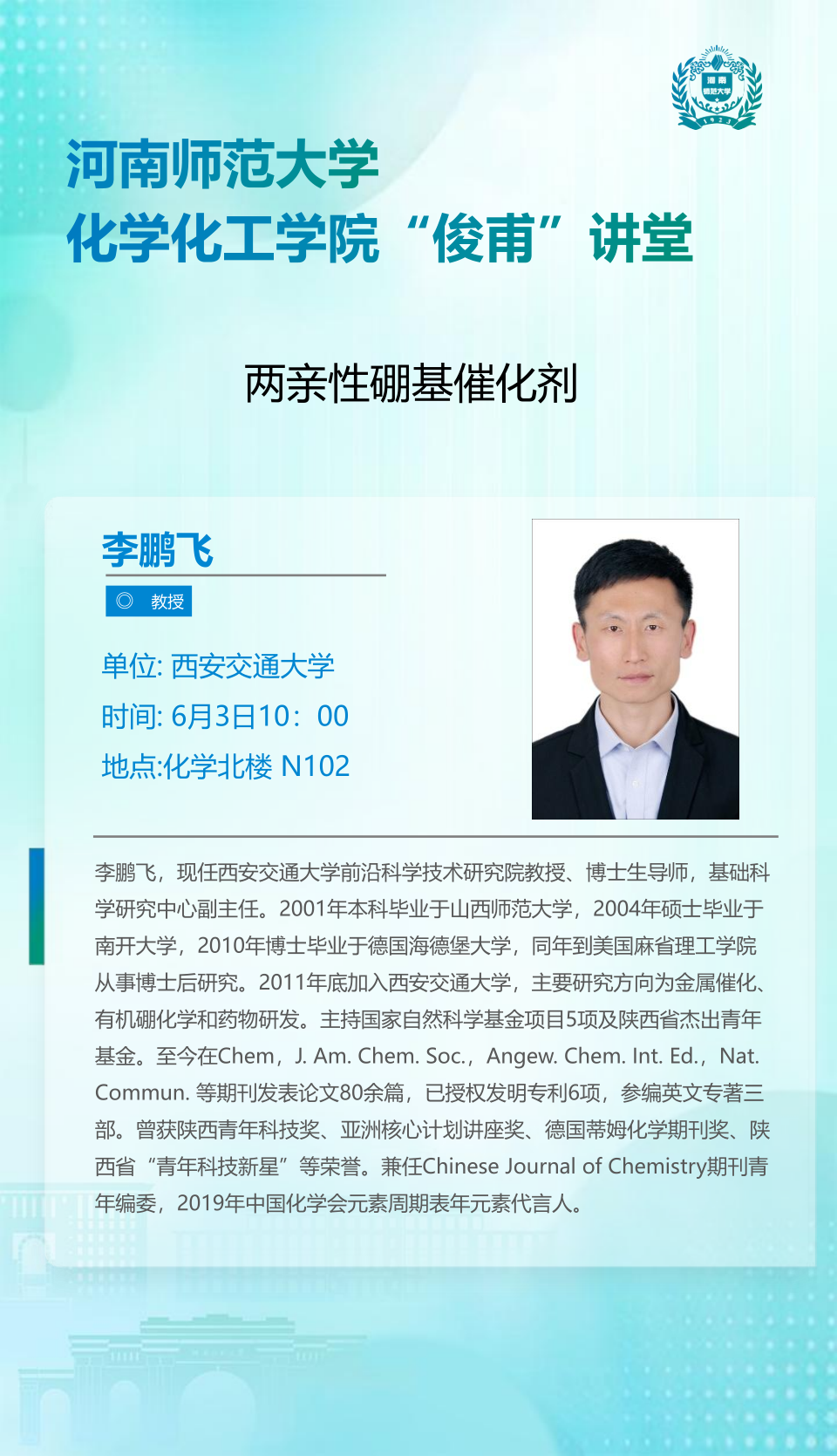 西安交通大学李鹏飞教授将应邀做客“俊甫讲堂”