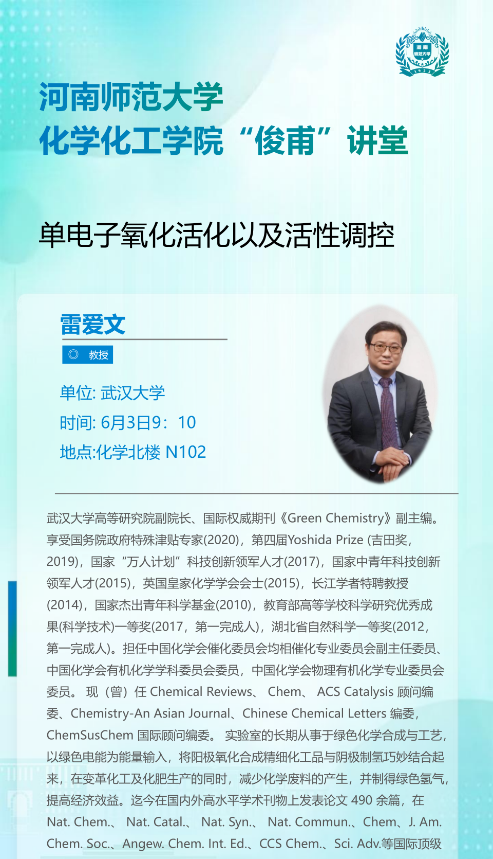 武汉大学雷爱文教授将应邀做客“俊甫讲堂”
