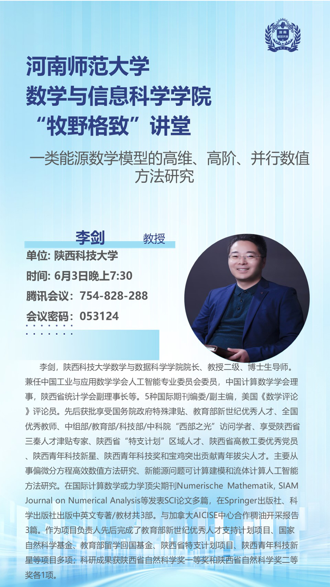 陕西科技大学李剑教授将应邀做客“牧野格致”讲堂