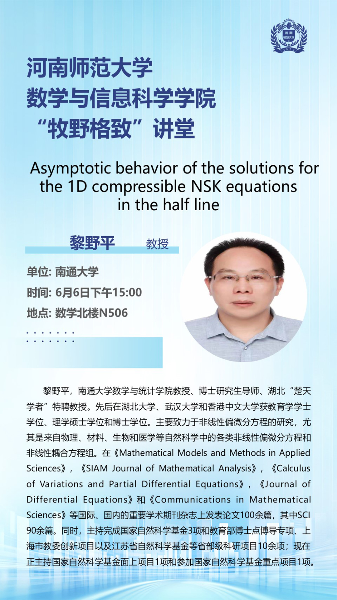 南通大学黎野平教授将应邀做客“牧野格致”讲堂