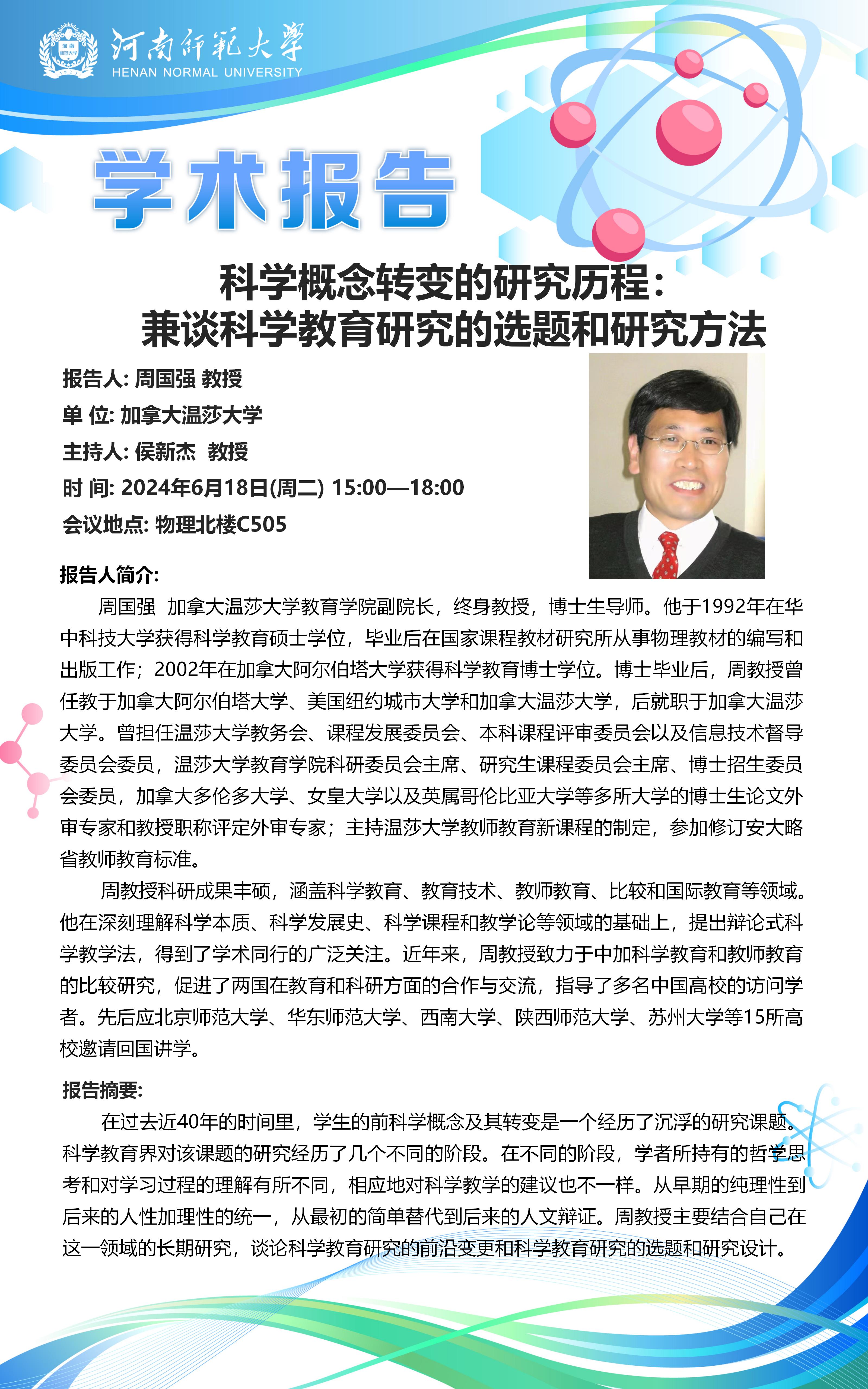 加拿大温莎大学周国强教授将应邀做客“八角楼”讲坛