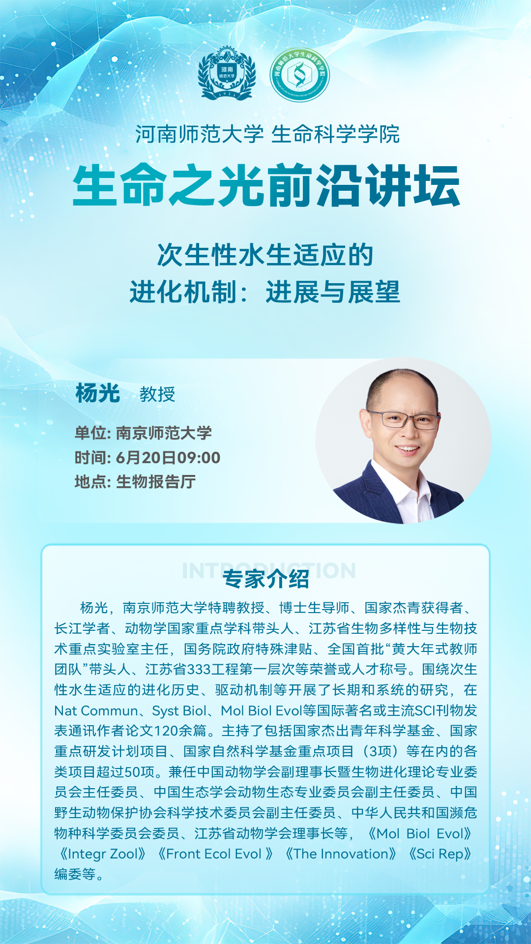南京师范大学杨光教授将应邀做客“生命之光前沿讲坛”