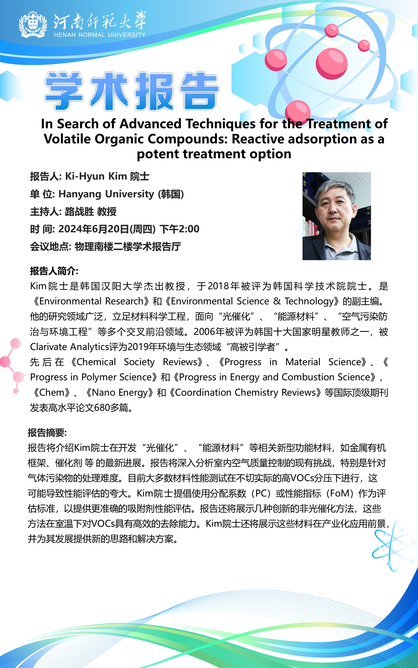 韩国汉阳大学Ki-Hyun Kim院士将应邀做客“八角楼”讲坛