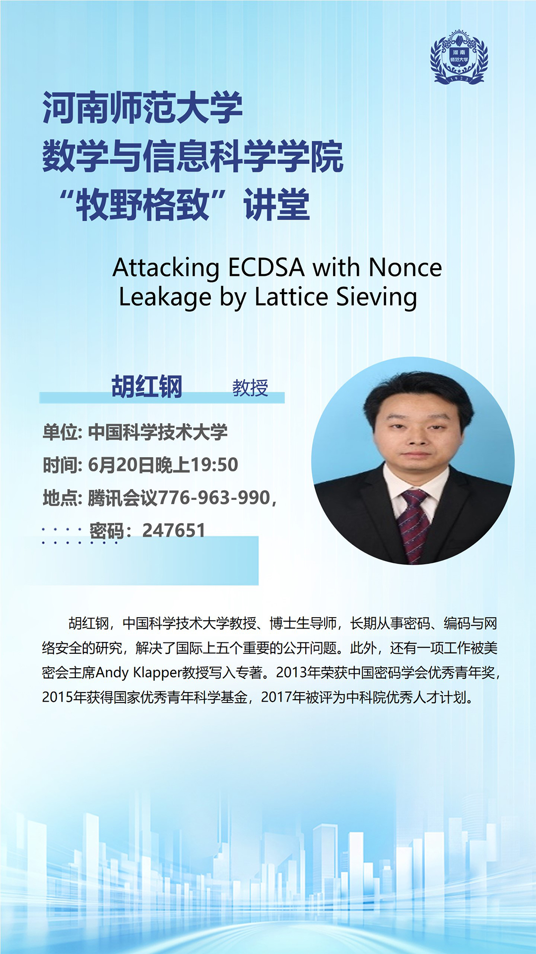 中国科学技术大学胡红钢教授将应邀做客“牧野格致”讲堂