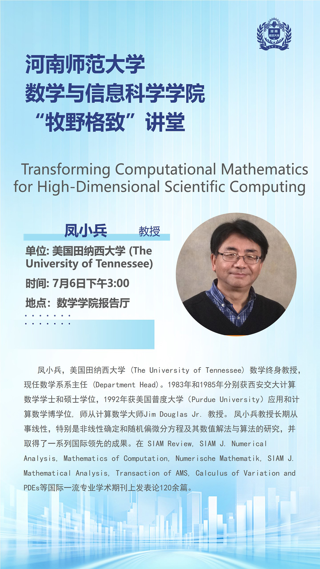 美国田纳西大学凤小兵教授将应邀做客“牧野格致”讲堂