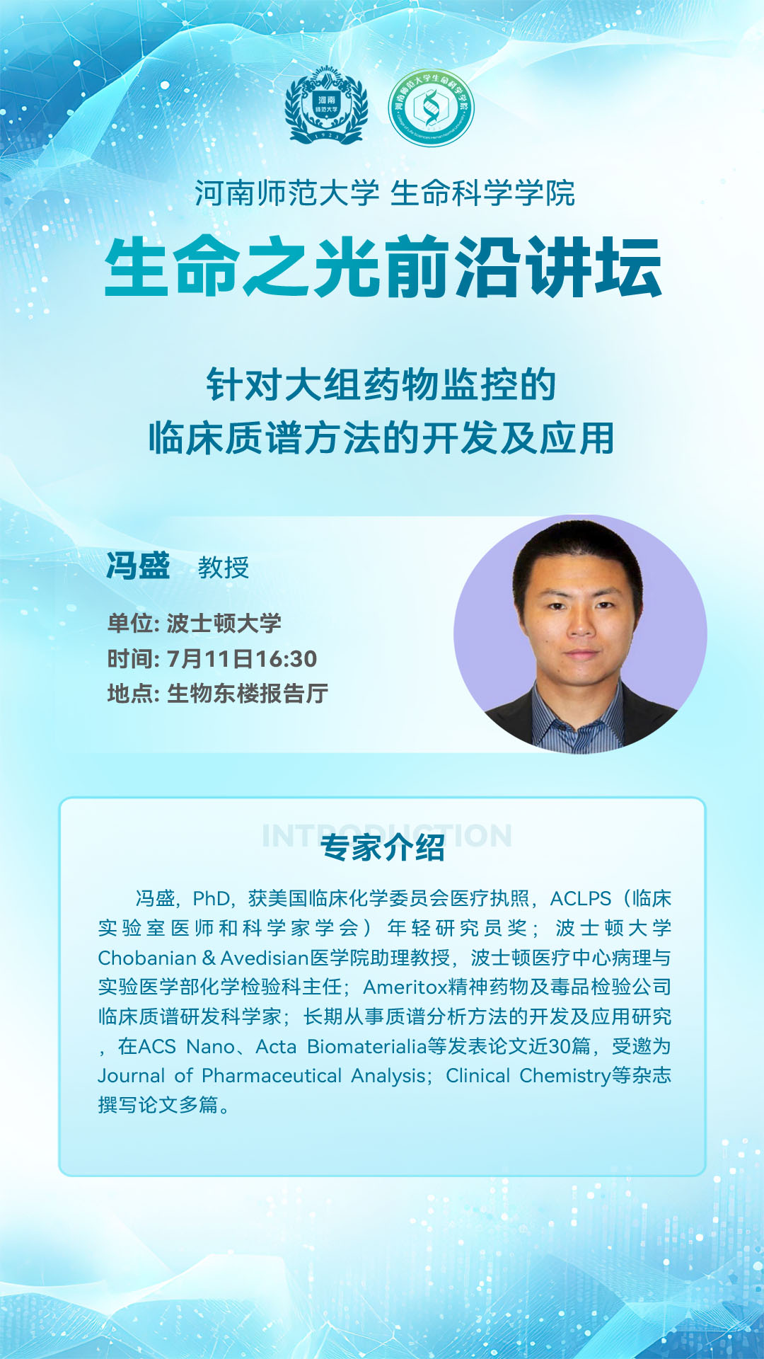 美国波士顿大学冯盛教授将应邀做客“生命之光前沿讲坛”