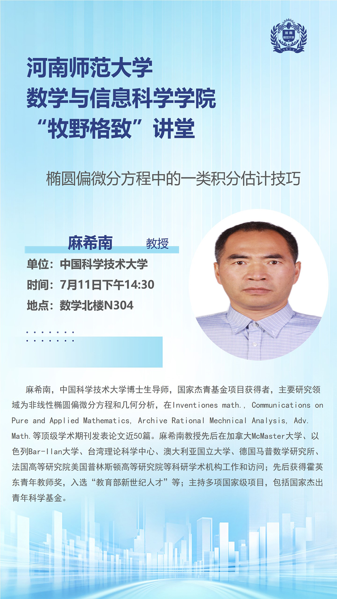 中国科学技术大学麻希南教授将应邀做客“牧野格致”讲堂