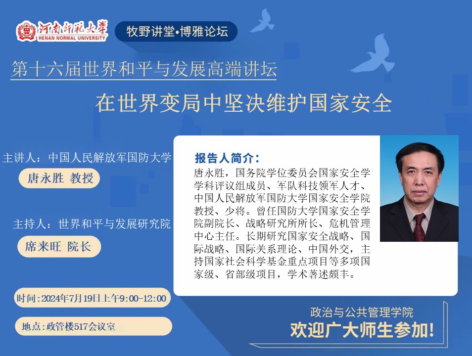 中国人民解放军国防大学唐永胜教授将应邀做客“牧野讲堂·博雅论坛”
