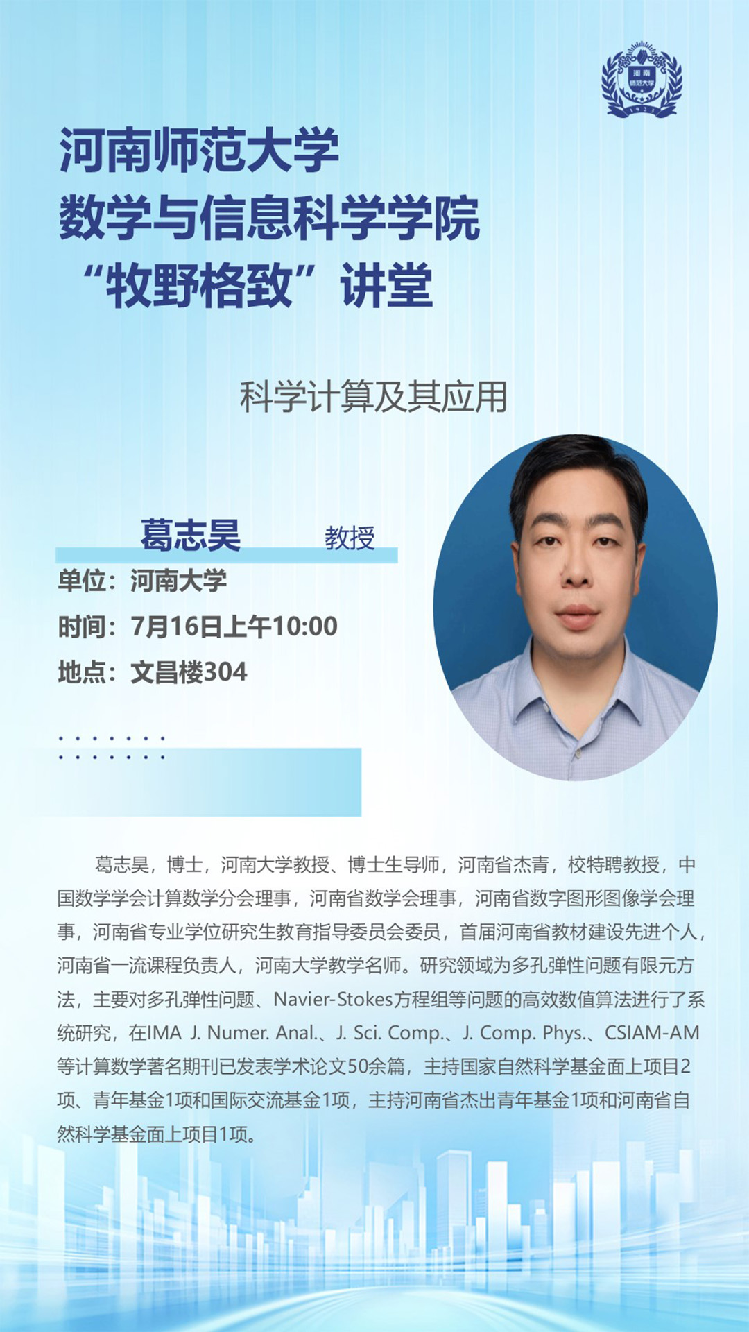 河南大学葛志昊教授将应邀做客“牧野格致”讲堂