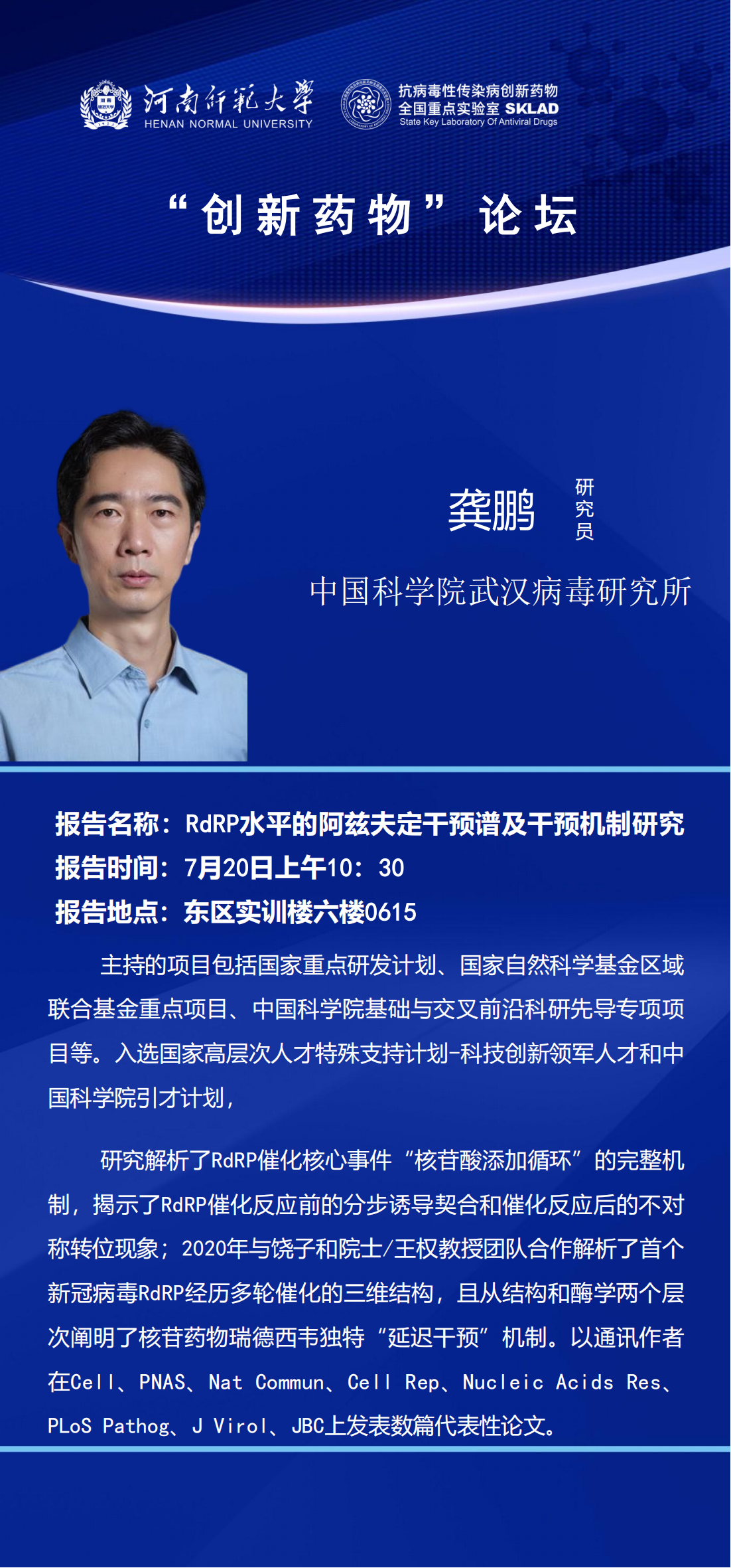 中国科学院武汉病毒研究所龚鹏研究员将应邀做客“创新药物”论坛