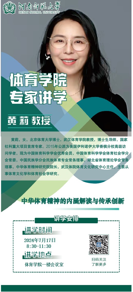 武汉体育学院黄莉教授将应邀做客体育博雅论坛