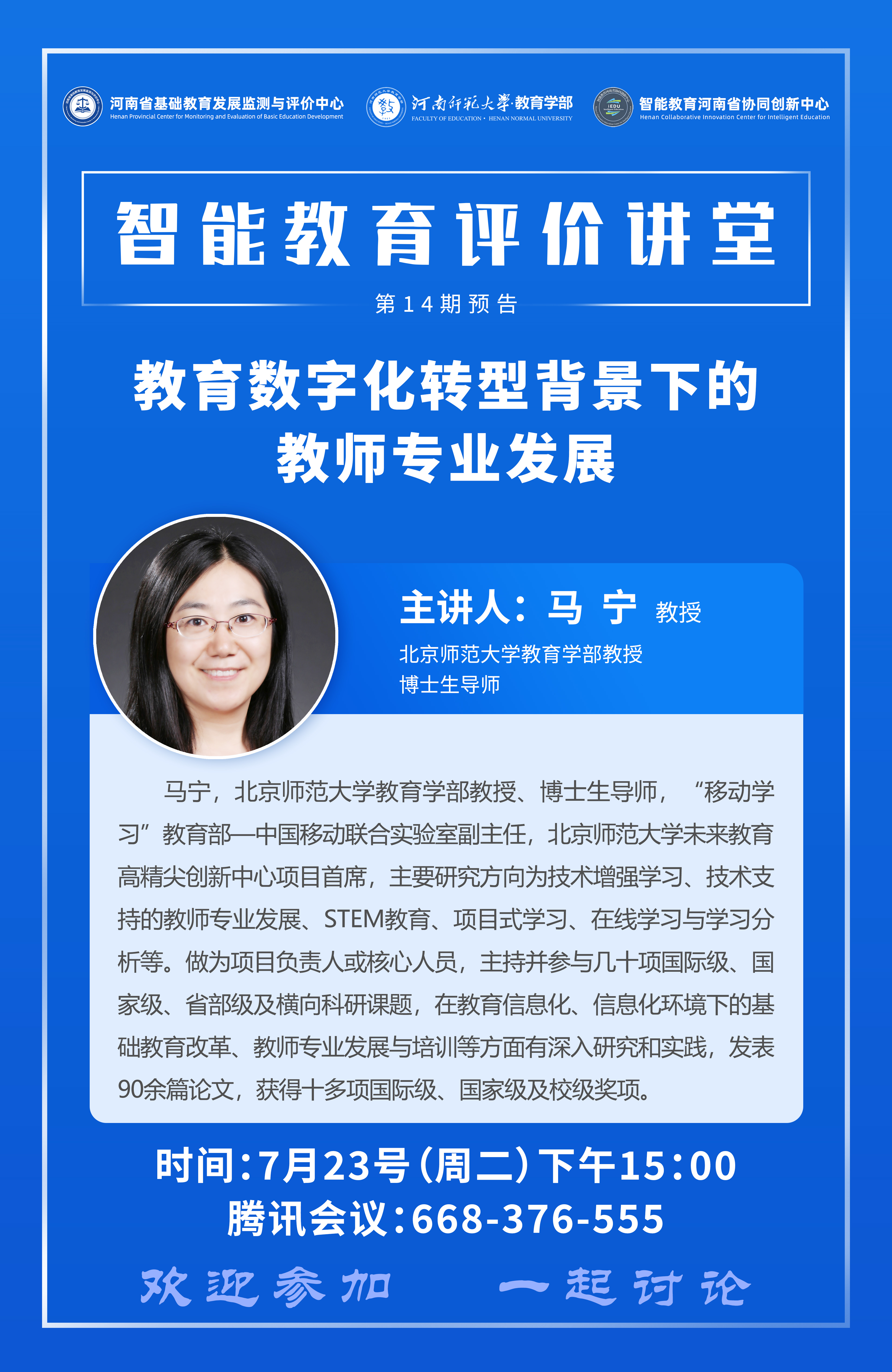 北京师范大学马宁教授将应邀做客“智能教育评价讲堂”