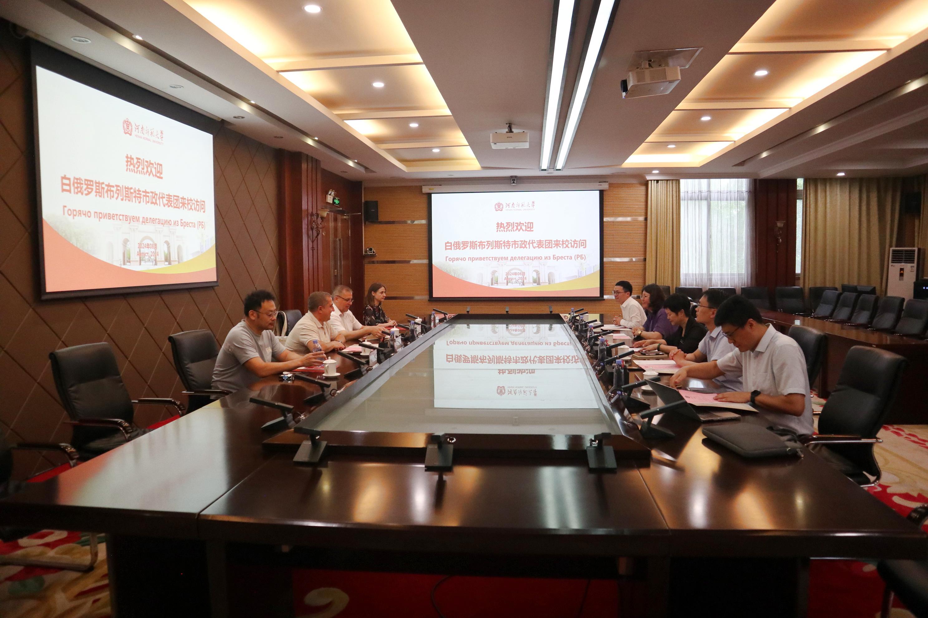 8月9日上午,白俄罗斯布列斯特市议会主席菲拉诺维奇·安德烈一行访问我校。副校长宋晔在勤政楼第三会议室会见来宾,党委统战部、国际合作与交流处负责人参加会谈。会议由国际合作与交流处处长赵扬主持。