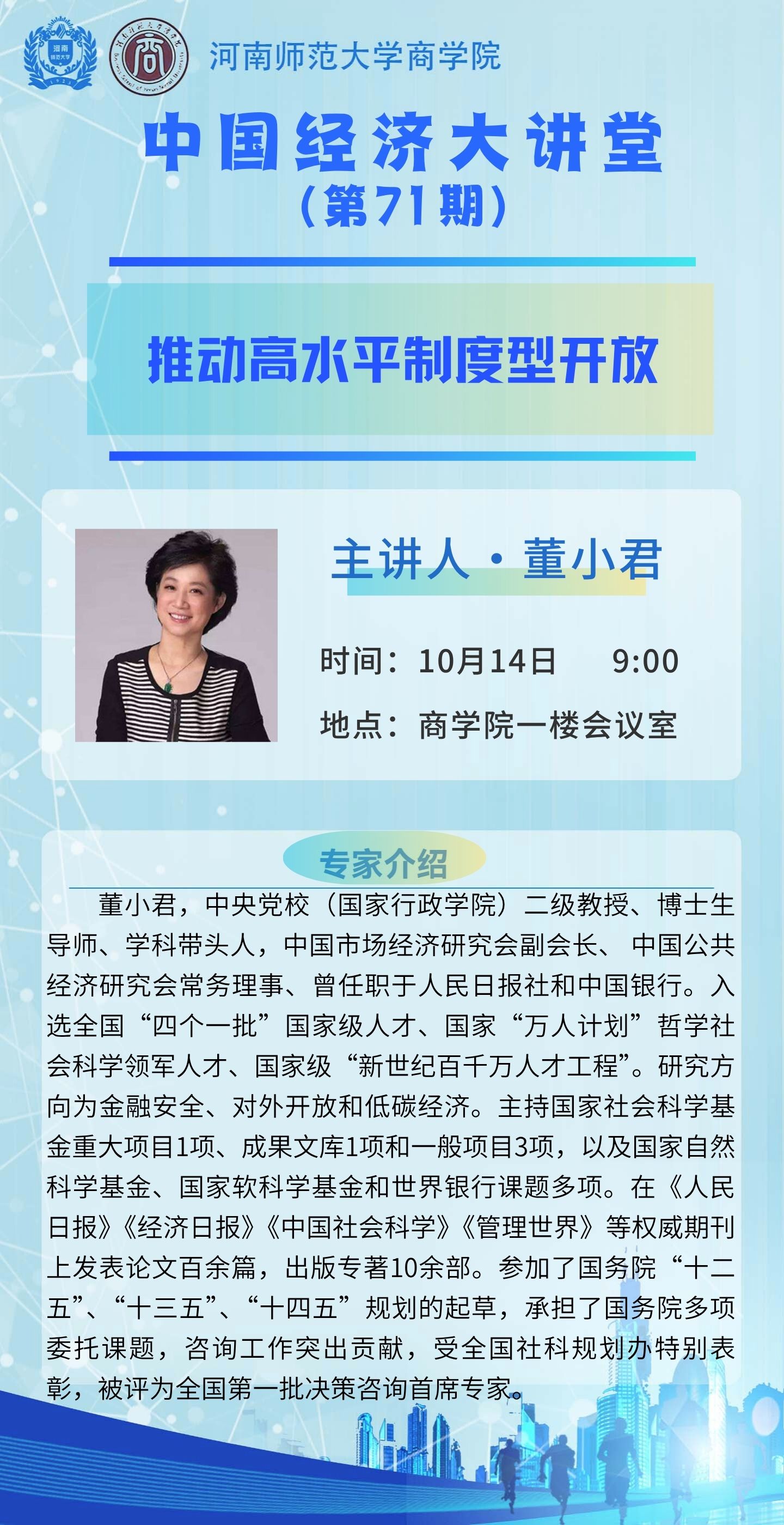 中央党校董小君教授将应邀做客“中国经济大讲堂”
