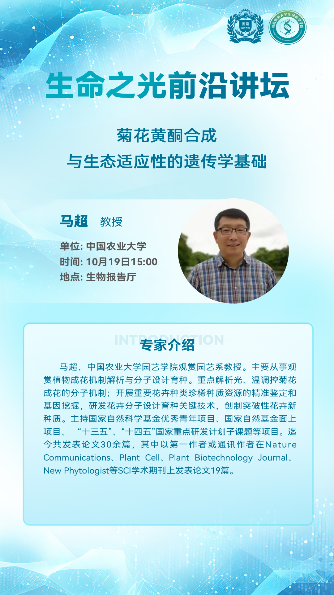 中国农业大学马超教授将应邀做客“生命之光”前沿讲坛
