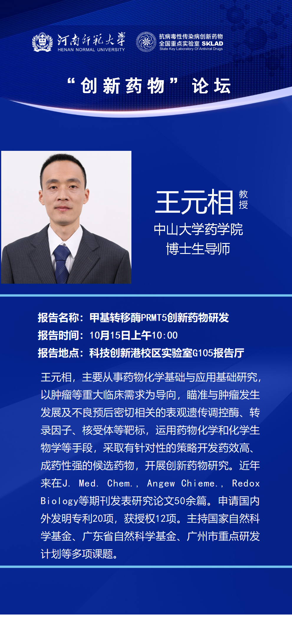 中山大学王元相教授将应邀做客“创新药物”论坛