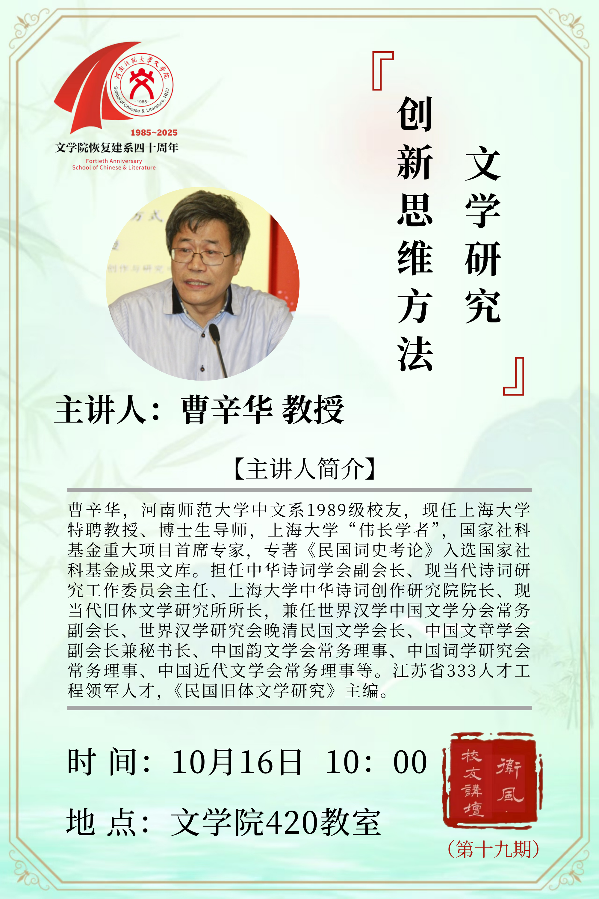 上海大学特聘教授曹辛华将应邀做客“卫风校友讲坛”