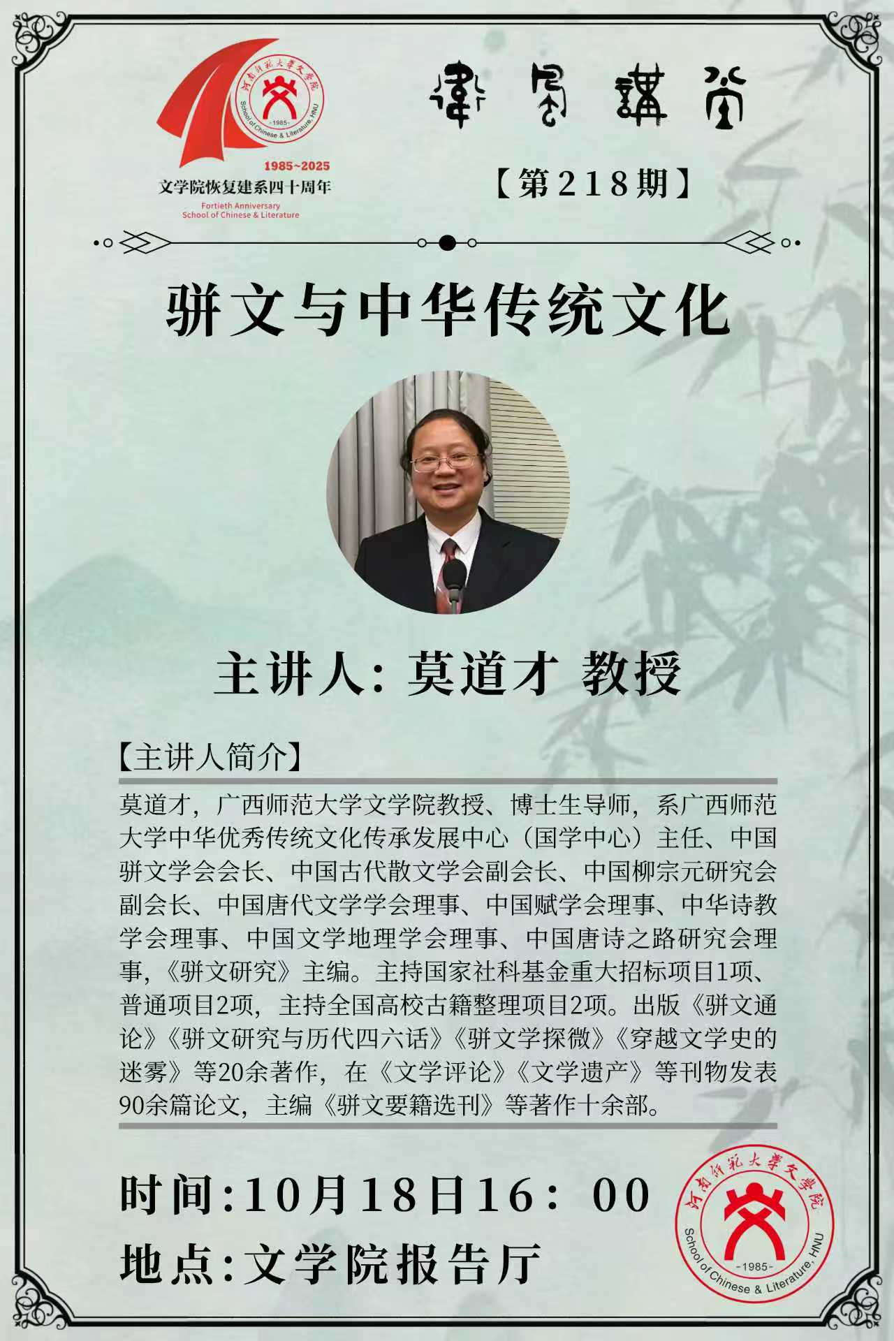 广西师范大学莫道才教授将应邀做客“卫风讲堂”