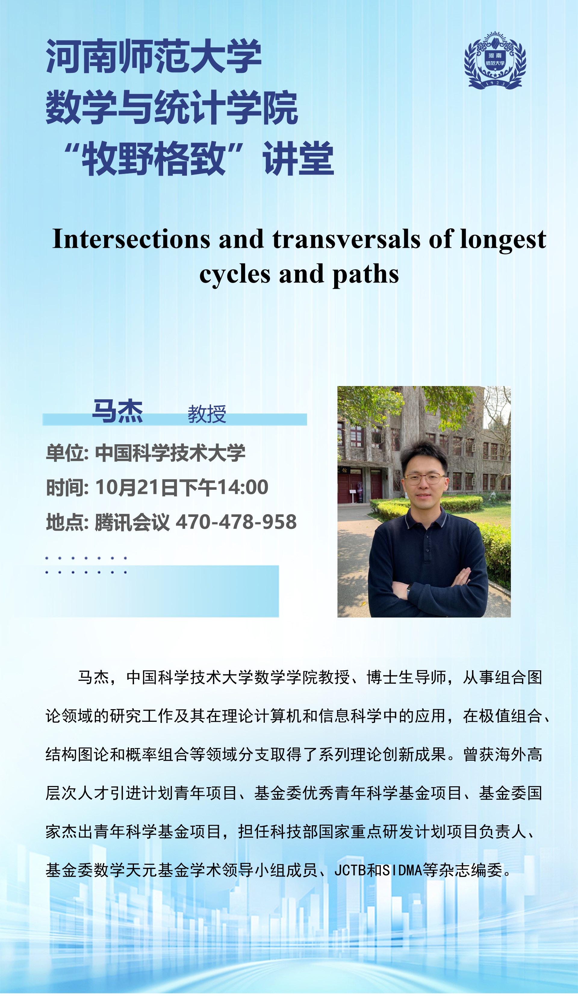 中国科学技术大学马杰教授将应邀做客“牧野格致”讲堂